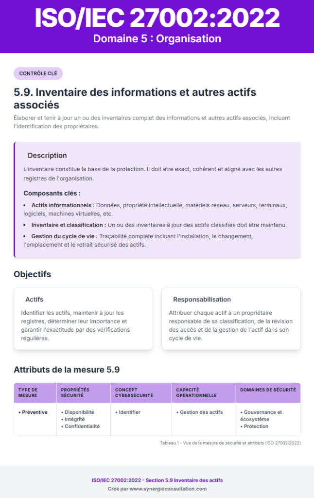 -Attribuer chaque actif à un propriétaire responsable de sa classification, de la révision des accès et de sa gestion tout au long de son cycle de vie