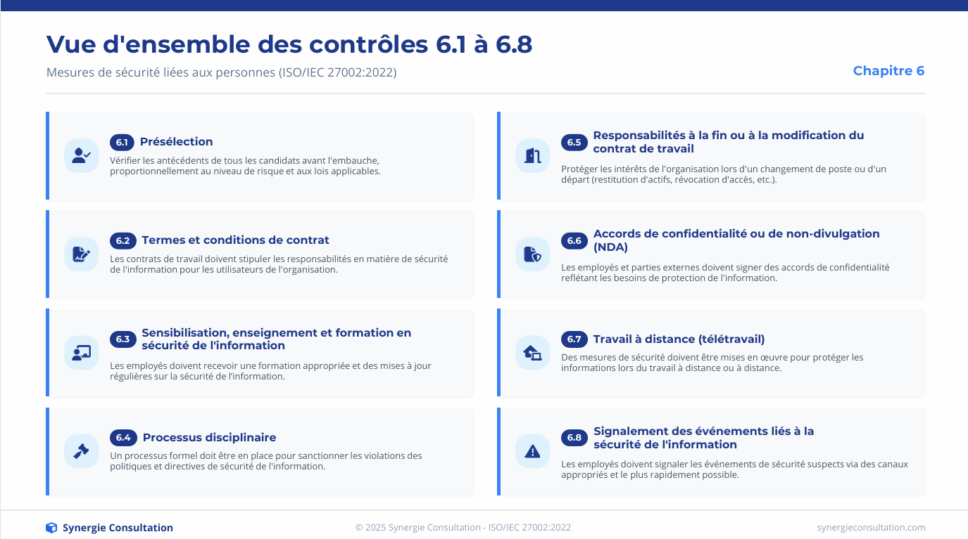 Périmètre. Mesures ISO/IEC 27002:2022 liées aux personnes (6.1–6.8)